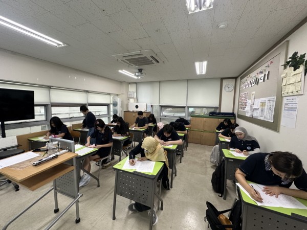다애학교에는 한국어를 처음 공부하는 학생부터 이제는 한국 사람과 이야기하는 데 어려움이 없는 학생들까지 그 실력이 다양한 학생들이 다니고 있는데요, 오늘은 한국어를 잘하는 학생부터 이제 배우기 시작한 학생들까지 글씨만 예쁘게 쓸 수 있다면 모두 도전해 볼 수 있는 예쁜글씨쓰기대회가 열렸습니다. 1학기보다 한국어 실력이 향상된 만큼 글씨체도 단정하고 예뻐진 다애학생들, 특히 이번에는 남학생들이 강세를 보이는데요, 과연 누가 수상할지 기대가 됩니다.