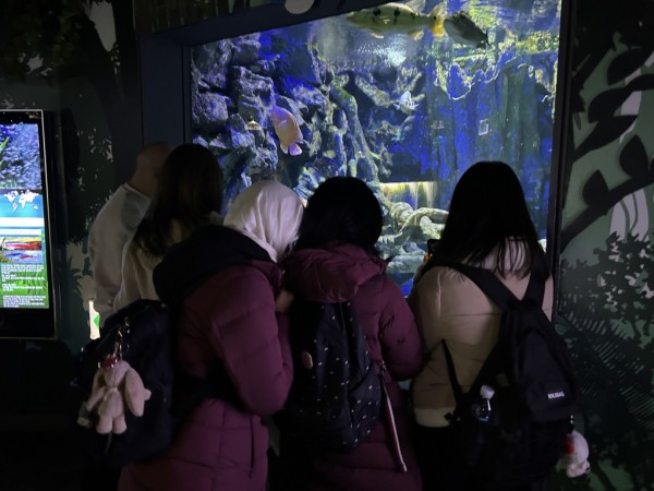 오늘은 국민연금공단 한국어교육 선생님들께서 특별한 수업을 준비해 주셨습니다. 바로 아쿠아리움 견학인데요! 아쿠아리움의 인기 동물인 벨루가부터 평소에 알지 못했던 신기한 수상 생물들을 직접 눈으로 볼 수 있는 재미있는 시간이었습니다. 수족관 안으로 빨려 들어가듯 관찰하는 학생들의 뒷모습이 참 예쁘네요! 학생들을 위해 멋진 시간을 마련해 주신 국민연금공단 선생님들께 감사드립니다.