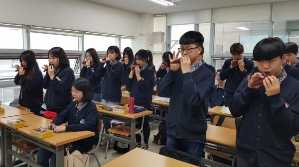 정성스레 만든 카네이션 브로치를 선생님들에게 달아주고, 편지를 읽어주고... 거기에 모든 학생들이 오카리나로 하나되어 연주하고 노래도 불러 준 '스승의 은혜'까지..!! 감사하다는 학생들의 인사에 선생님들 모두 뭉클한 미소가 번졌습니다.