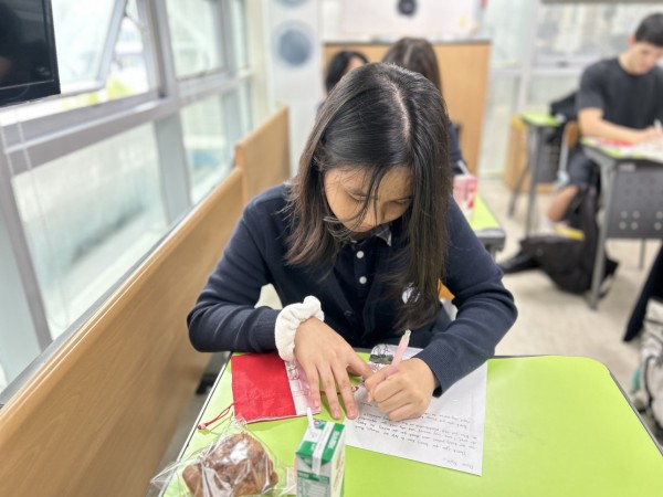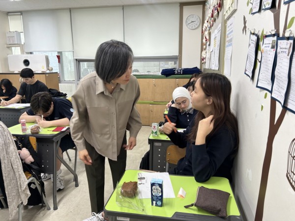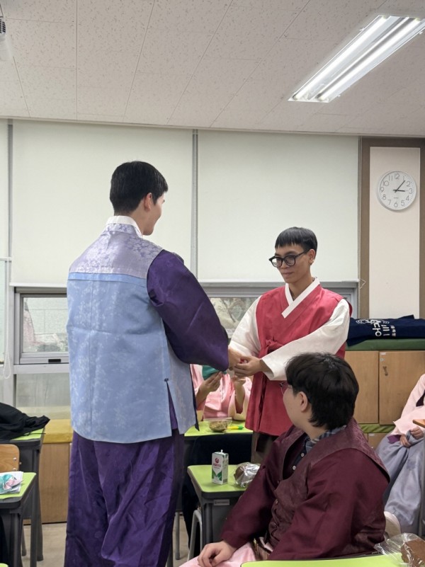 긴 추석 연휴를 보내고 맞이하는 공동체훈련 여섯 번째 시간! 예쁜 복주머니에 친구에게 격려해 주고 복을 빌어주는 메시지를 담아 넣었습니다. 그리고 추석에 입어보지 못한 예쁜 한복을 입고 친구에게 복주머니를 선물해 주었는데요. 친구에게 받은 메시지를 보고 함박웃음을 짓는 학생들입니다. 아마 그 누구에게서도 받아보지 못한 서로를 이해해 주는 메시지였을 것 같네요. 곱게 한복을 입은 우리 다애학생들, 참 예쁘죠?