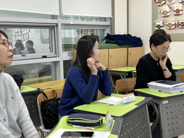 다애학교는 다문화 학생들의 한국어 교육에 중점을 두는 학교입니다. 그래서 많은 한국어 선생님들께서 학생들의 한국어 교육을 담당하고 계신데요, 오늘은 경인교대 국어교육과 최영환 교수님을 모시고 1년간 다애학교에서 진행되었던 한국어 교육을 피드백하는 시간을 가졌습니다. 열정으로 다애학생들을 가르쳐 주시는 선생님들, 더 나은 한국어 교육을 위해 열심히 질문하고 들으시는 모습이 마치 학생으로 돌아가신 듯하네요.