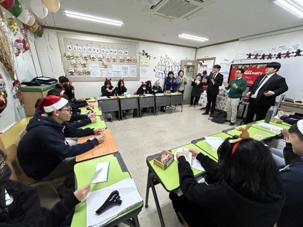 때때마다 다애학교에 방문하여 학생들이 힘을 낼 수 있는 좋은 말씀과 선물을 주시는 수서안디옥교회 선생님들께서 크리스마스를 앞두고 두 손 가득히 다애학교에 와 주셨습니다. 특히 이번에는 졸업하는 3학년들을 축하하는 시간도 가졌습니다. 수서안디옥교회 선생님들 덕분에 다애학생들은 명절 때마다 마음이 따뜻하고 풍성한 시간들을 보냈는데요, 늘 다애학생들을 생각하시고 응원해 주시는 수서안디옥교회 선생님들께 진심으로 감사드립니다.