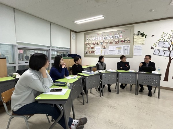 다애학교는 다문화 학생들의 한국어 교육에 중점을 두는 학교입니다. 그래서 많은 한국어 선생님들께서 학생들의 한국어 교육을 담당하고 계신데요, 오늘은 경인교대 국어교육과 최영환 교수님을 모시고 1년간 다애학교에서 진행되었던 한국어 교육을 피드백하는 시간을 가졌습니다. 열정으로 다애학생들을 가르쳐 주시는 선생님들, 더 나은 한국어 교육을 위해 열심히 질문하고 들으시는 모습이 마치 학생으로 돌아가신 듯하네요.