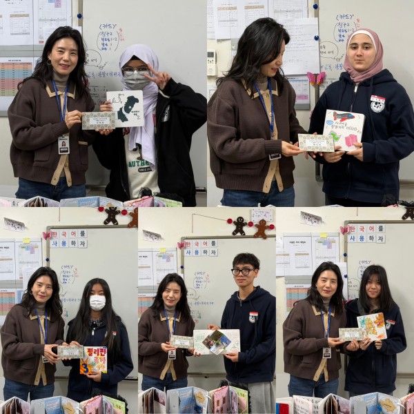 한 달의 시간 동안 심혈을 기울여 만든 <엄마나라 이야기책>을 발표하는 날이 돌아왔습니다! 잠도 줄여가며 모국을 소개하는 이야기책을 정성스럽게 만든 학생들인데요, 특히 올해는 9개 국가의 학생들이 있어 다양한 나라의 책들이 나왔습니다. 화려하게 꾸민 것보다 내용에 충실하여 모국을 잘 소개하고 표현한 다섯 명의 작품을 수상작으로 뽑았는데요, 각 나라의 정보뿐만 아니라 학생들의 기발한 아이디어와 그림 실력까지 엿볼 수 있는 작품들이랍니다.