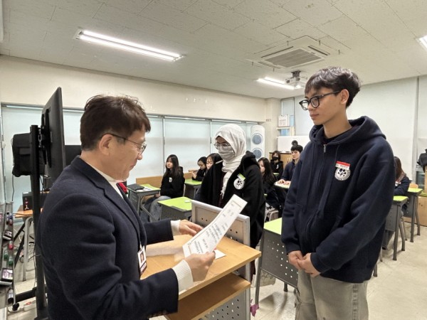 학생들도 선생님들도 열심히 달려온 2025학년도의 마지막 날입니다. 한 해의 학습 결과를 볼 수 있는 각종 교육활동 시상과 장학금 수여식, 학생들의 변화와 성장을 느낄 수 있는 감사노트 소감문 발표, 교장 선생님의 훈화 말씀으로 이루어진 종업식을 끝으로 올해도 마무리되었습니다. 특히 이번 종업식에는 지난 수학여행 때 사진으로 재능기부를 해 주신 국민연금공단 세아사 서공석 부장님께서 3학년의 졸업앨범을 직접 만들어 나누어 주시기 위해 종업식에 함께 해 주셨습니다. 이렇듯 많은 분들의 사랑을 받아 1년간 무럭무럭 자란 다애학생들인데요, 받은 사랑을 나누어 주며 더 크게 성장할 다애학생들을 진심으로 응원합니다!
