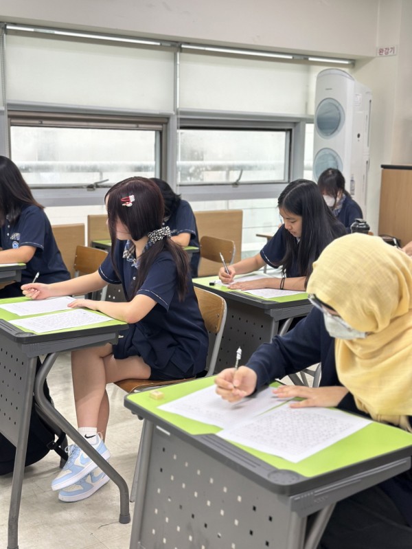 다애학교에는 한국어를 처음 공부하는 학생부터 이제는 한국 사람과 이야기하는 데 어려움이 없는 학생들까지 그 실력이 다양한 학생들이 다니고 있는데요, 오늘은 한국어를 잘하는 학생부터 이제 배우기 시작한 학생들까지 글씨만 예쁘게 쓸 수 있다면 모두 도전해 볼 수 있는 예쁜글씨쓰기대회가 열렸습니다. 1학기보다 한국어 실력이 향상된 만큼 글씨체도 단정하고 예뻐진 다애학생들, 특히 이번에는 남학생들이 강세를 보이는데요, 과연 누가 수상할지 기대가 됩니다.