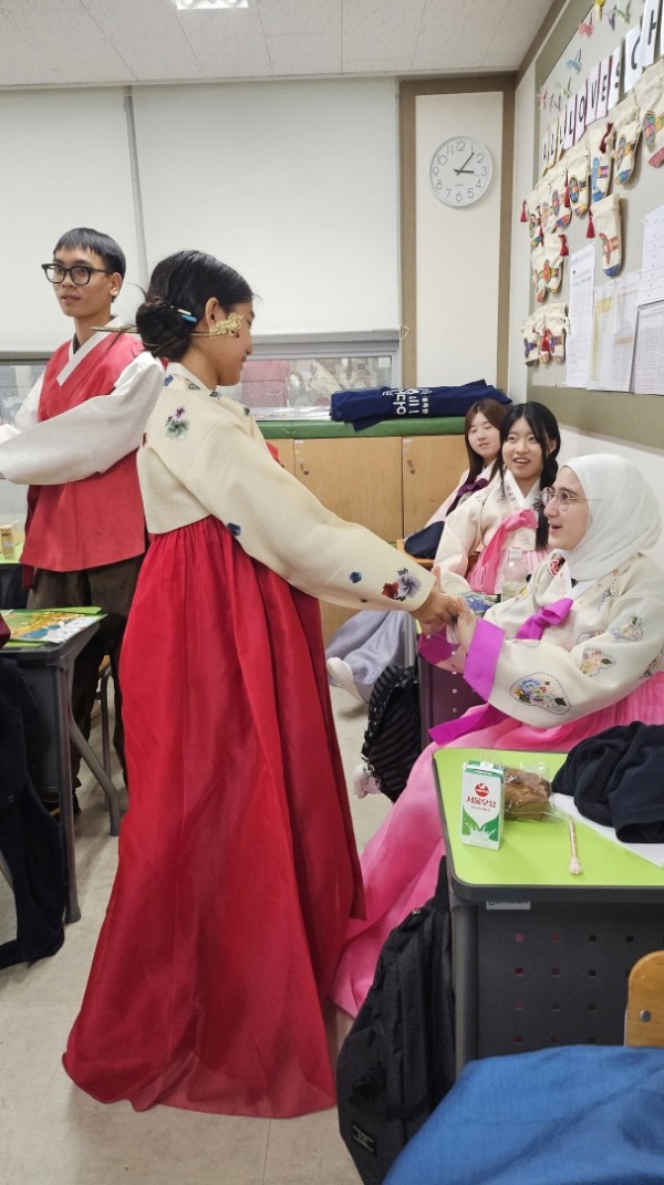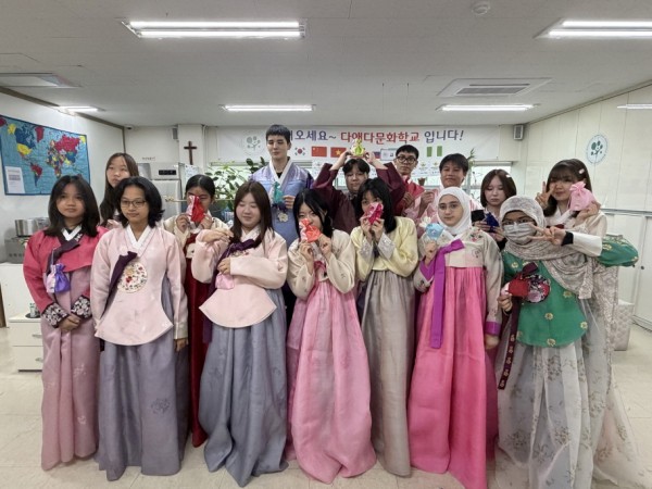 긴 추석 연휴를 보내고 맞이하는 공동체훈련 여섯 번째 시간! 예쁜 복주머니에 친구에게 격려해 주고 복을 빌어주는 메시지를 담아 넣었습니다. 그리고 추석에 입어보지 못한 예쁜 한복을 입고 친구에게 복주머니를 선물해 주었는데요. 친구에게 받은 메시지를 보고 함박웃음을 짓는 학생들입니다. 아마 그 누구에게서도 받아보지 못한 서로를 이해해 주는 메시지였을 것 같네요. 곱게 한복을 입은 우리 다애학생들, 참 예쁘죠?