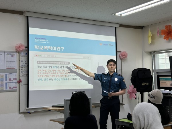 모든 학생이 서로 화목한 학교생활을 할 수 있도록 오늘은 수서경찰서 범죄예방팀에서 오셔서 학교폭력 및 성폭력 예방교육을 진행해 주셨습니다. 요즘 청소년 관련 범죄 중 사회적으로 큰 문제가 된 전동킥보드 안전사고를 시작으로, 학생들 간 발생하는 각종 학교폭력 사안에 대해 말씀해 주셨습니다. 특히 메신저에서 발생하는 폭력은 학생들 사이에서는 가볍게 여길 수 있는 문제 중 하나인데요, 보이지 않는 곳에서 더 바르게 생활하는 다애학생들이 되길 바랍니다.