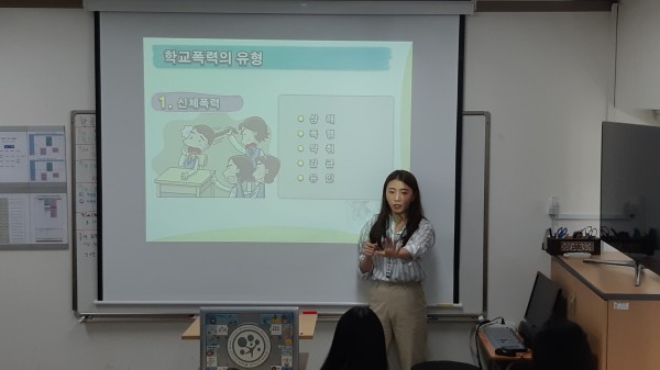 친구끼리 하는 장난도 학교 폭력이 될 수 있으며 ‘폭력’의 유형, 다애 학교에서 일어난 학교 폭력 사례들, 신고와 처벌 등 다애 학생들이 이해하기 쉽도록 강의가 진행되었습니다.